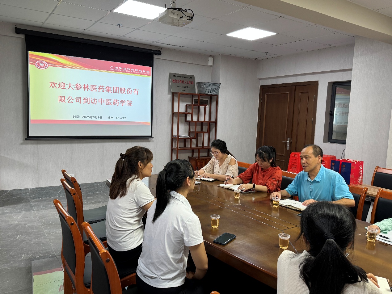 2025年9月9日,大參林醫(yī)藥集團股份有限公司代表一行到訪中醫(yī)藥學(xué)院,雙方就人才培養(yǎng)、實習(xí)就業(yè)、科研項目、學(xué)生競賽等方面展開了深入交流與探討。