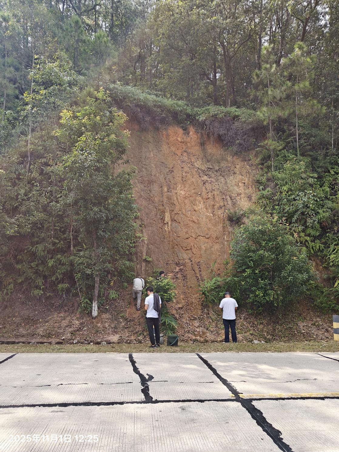 兩位教授根據(jù)地質(zhì)現(xiàn)象,從如何觀察、構(gòu)造的細(xì)微差異、構(gòu)造成因分析、與金礦的成因等現(xiàn)象,對(duì)青年教師做了耐心講解、交流。青年教師們?nèi)谭e極參與、主動(dòng)求知,通過理論與實(shí)踐的深度融合,不僅直觀理解了課堂教學(xué)中抽象的地質(zhì)概念,更有效拓寬了專業(yè)視野,積累了寶貴的野外地質(zhì)工作經(jīng)驗(yàn),對(duì)云浮市及周邊區(qū)域的地質(zhì)構(gòu)造現(xiàn)象、如何采集定向標(biāo)本等技能有了更為深刻的認(rèn)知。參與考察的青年教師表示,此次活動(dòng)不僅提升了自身的野外實(shí)踐能力,更明確了今后教科研的發(fā)力方向,將把所學(xué)所獲融入課堂教學(xué)與科研工作中,切實(shí)提升教學(xué)質(zhì)量與研究水平。