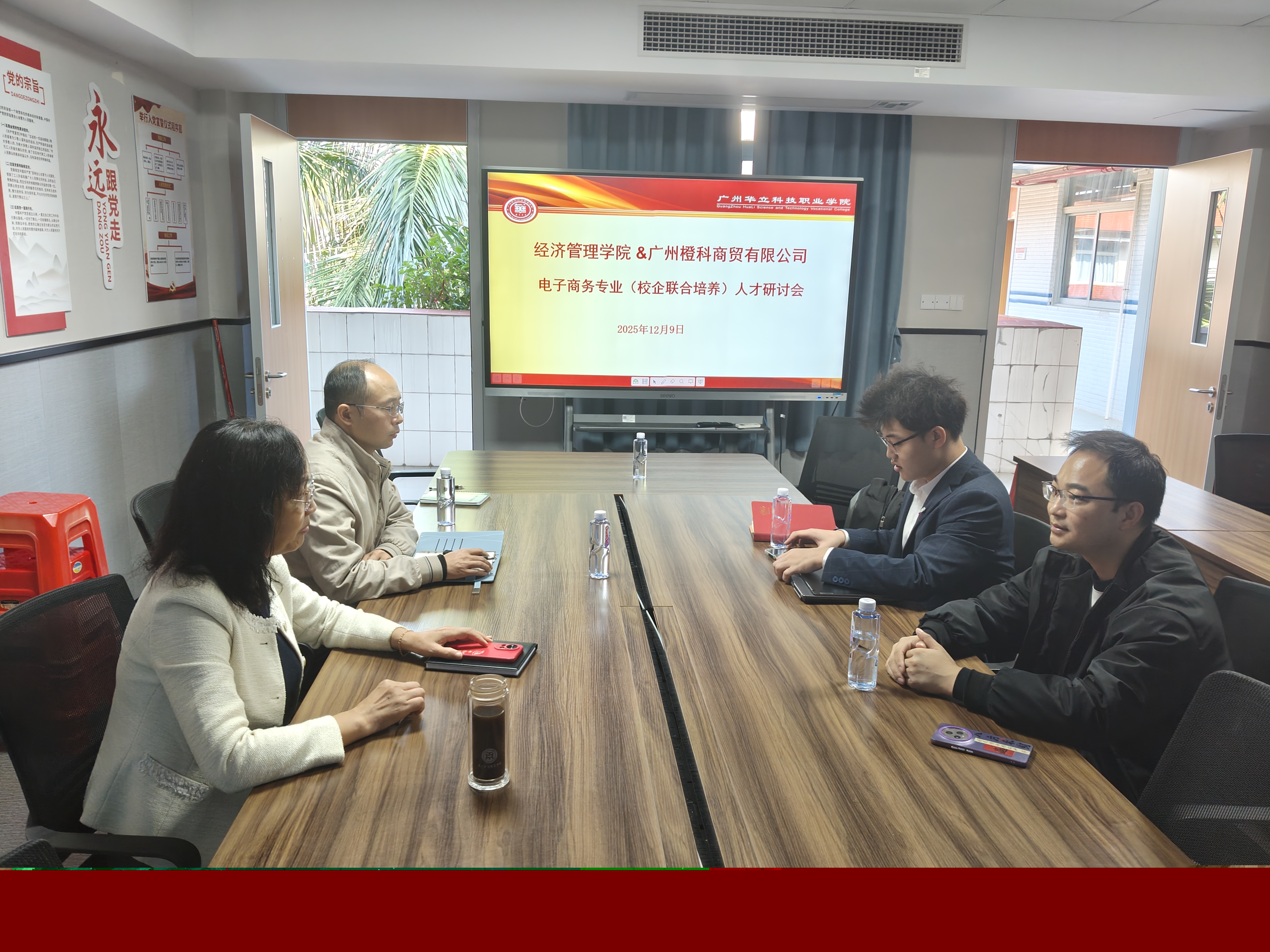 為深入貫徹國家關(guān)于深化產(chǎn)教融合、校企合作的戰(zhàn)略部署,推動我校電子商務(wù)專業(yè)人才培養(yǎng)模式創(chuàng)新,提升應(yīng)用型人才培養(yǎng)質(zhì)量,廣州華立科技職業(yè)學(xué)院經(jīng)濟(jì)管理學(xué)院與廣州橙科商貿(mào)有限公司于2025年12月9日在西1-613會議室成功舉辦了電子商務(wù)專業(yè)(校企聯(lián)合培養(yǎng))專題研討會。會議旨在總結(jié)前期合作經(jīng)驗,共商未來發(fā)展大計,推動校企協(xié)同育人機(jī)制邁向更深層次、更廣領(lǐng)域。經(jīng)濟(jì)管理學(xué)院院長劉惠玲、教務(wù)主任冷長恒與廣州橙科商貿(mào)有限公司總經(jīng)理豆?jié)赏?/span>、運營總監(jiān)吳總共同出席了本次研討會。