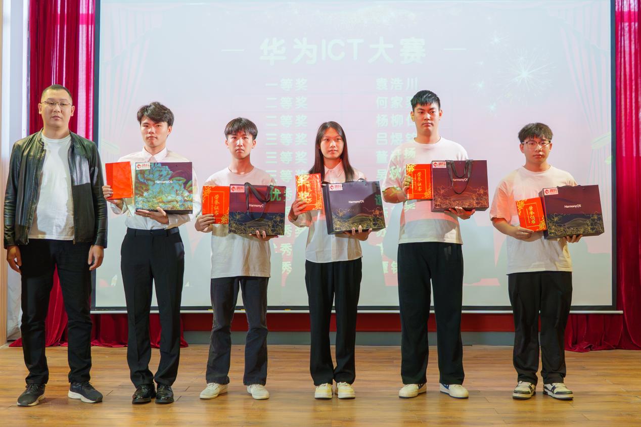 在隨后舉行的頒獎典禮上,大會依次對在華為ICT大賽、網(wǎng)站項目開發(fā)競賽、全國大學(xué)生職業(yè)規(guī)劃大賽三大賽事中榮獲一、二、三等獎及優(yōu)秀獎的同學(xué)進行了表彰。與會領(lǐng)導(dǎo)和企業(yè)嘉賓分別為獲獎學(xué)生頒獎,現(xiàn)場掌聲不斷,氣氛熱烈。大會還頒發(fā)了“優(yōu)秀指導(dǎo)老師”與“優(yōu)秀組織獎”,感謝他們在賽事組織與學(xué)生培養(yǎng)中的辛勤付出。