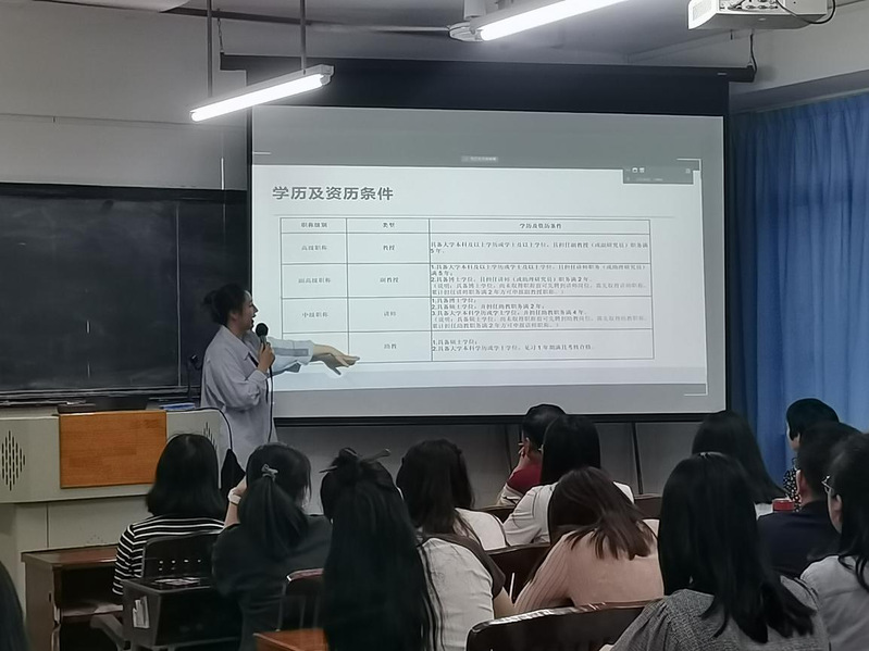 人事處師資科科長廖玲彬就今年職稱評(píng)審的政策進(jìn)行了細(xì)致的解讀,對(duì)涉及的學(xué)術(shù)成果提交、審核及學(xué)術(shù)規(guī)范等提出要求;就申報(bào)流程、材料準(zhǔn)備、繼續(xù)教育學(xué)時(shí)登記等問題做了詳細(xì)的講解。