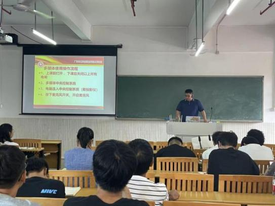 再次,教學(xué)督導(dǎo)隋良志教授向新入職教職工講授了“如何上好一堂課”,從教學(xué)對象、教學(xué)理念、教學(xué)方法等幾個方面開展培訓(xùn)。教務(wù)處何勝華科長對教師如何申請調(diào)課、停課等日常教學(xué)展開專業(yè)培訓(xùn)。實訓(xùn)中心李金華老師等對多媒體教學(xué)設(shè)備的使用方法、實驗室的安全注意事項及錄播室的具體使用方法進行培訓(xùn),并現(xiàn)場進行了演示。
