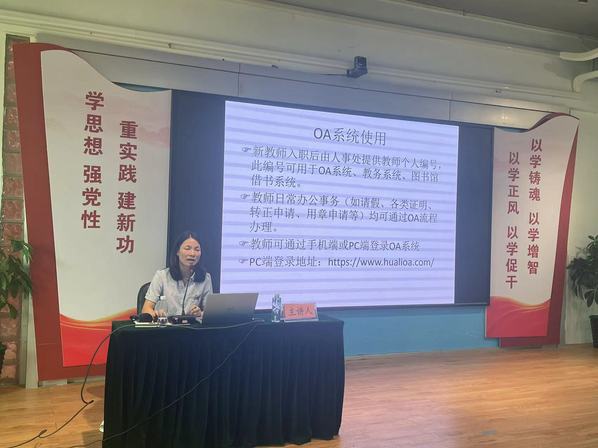 接著,校辦任志勇副主任對學校的基本情況作了全面簡介,包括學校的發(fā)展簡史、職能部門設(shè)置、二級學院情況、學校章程等,重點介紹了學校的辦學理念和發(fā)展目標,希望新入職教師了解華立文化,盡快融入華立大家庭。