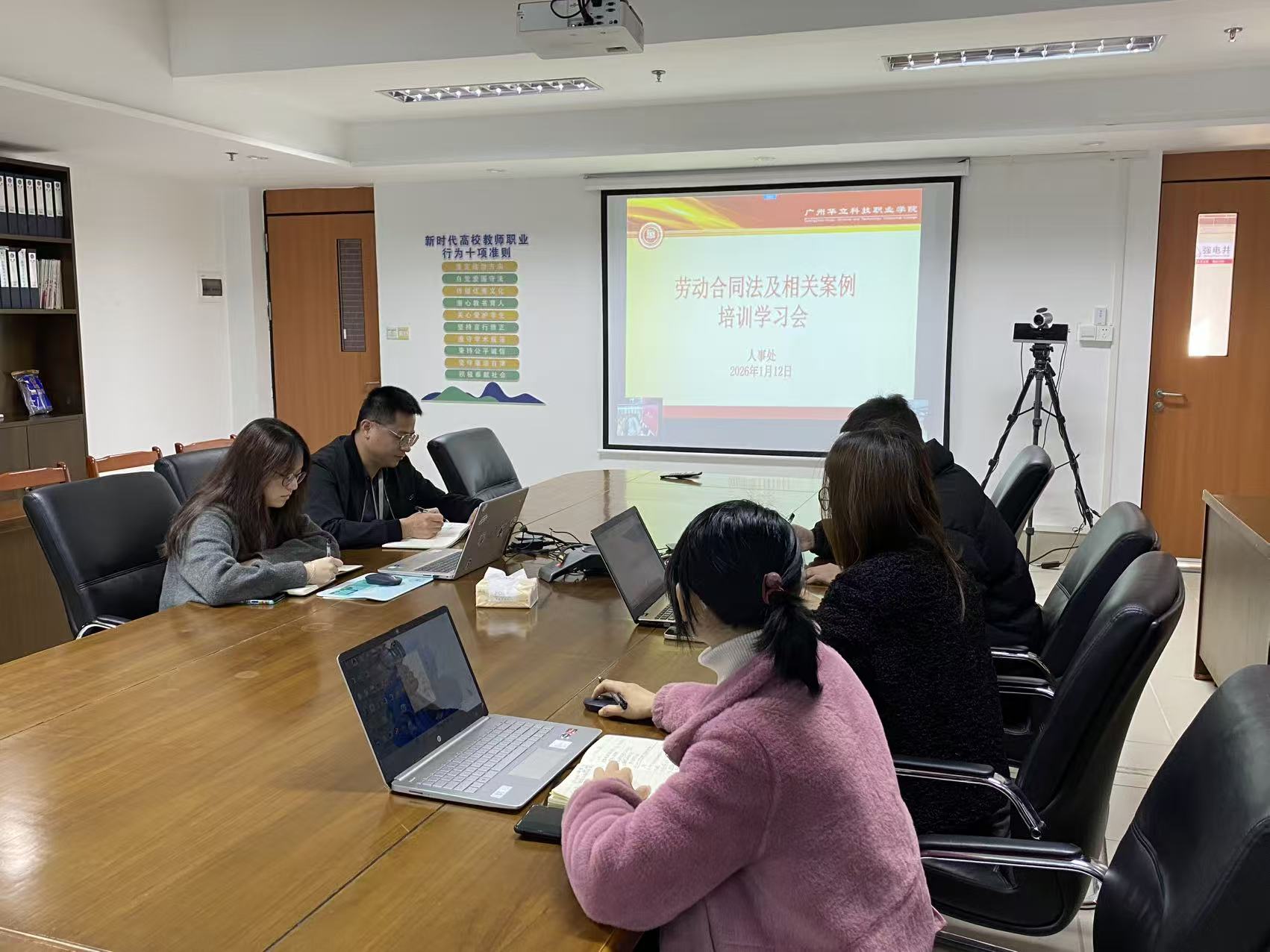 為進(jìn)一步提升學(xué)校合規(guī)管理水平,增強(qiáng)風(fēng)險(xiǎn)防范意識,確保教職工手冊、勞動合同、規(guī)章制度等合法有效,學(xué)校于2026年1月12日組織人事管理工作人員開展勞動合同法及相關(guān)案例學(xué)習(xí)培訓(xùn)。