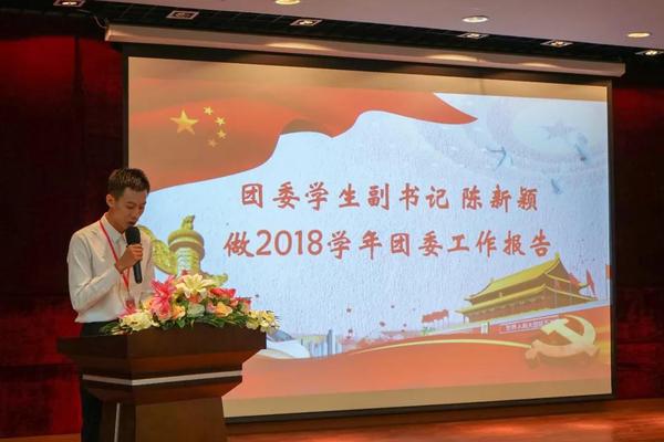 隨后,由校團委學生處副書記陳新穎同學進行2018年度工作總結(jié)。陳新穎同學表示校團委九大部門本著“引領(lǐng)思想、服務同學、鍛煉自我”為宗旨的指導下高效穩(wěn)定的完成各項工作。