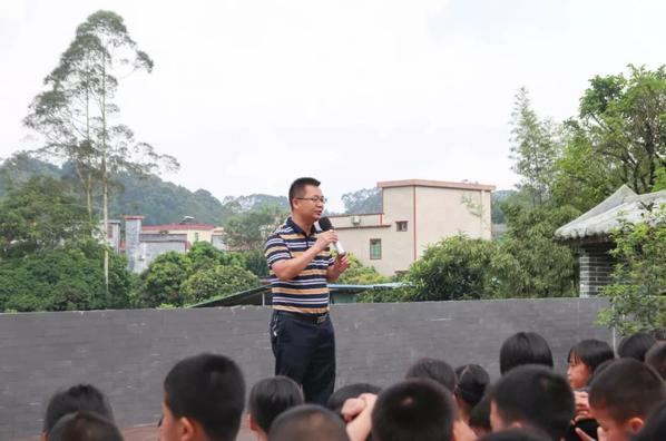 儀式第二項由增城區(qū)福和鎮(zhèn)育才小學古校長作國旗下的講話:相較大城市,我們學校地區(qū)偏遠,感謝此次廣州華立科技職業(yè)學院志愿者團隊給困難者提供一些慰問,為我們的孩子帶來豐富的課余生活。