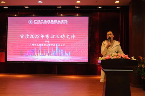 蒞臨本次大會(huì)的領(lǐng)導(dǎo)老師有廣州華立科技職業(yè)學(xué)院馬俊副校長校團(tuán)委書記朱君老師招生辦主任蘇越老師校團(tuán)委副書記張超越老師招生辦招生科尹金鳳老師校團(tuán)委辦公室梁安達(dá)老師招生辦宣傳科何靖君老師各二級(jí)學(xué)院團(tuán)總支書記以及參加寒訪的學(xué)生。