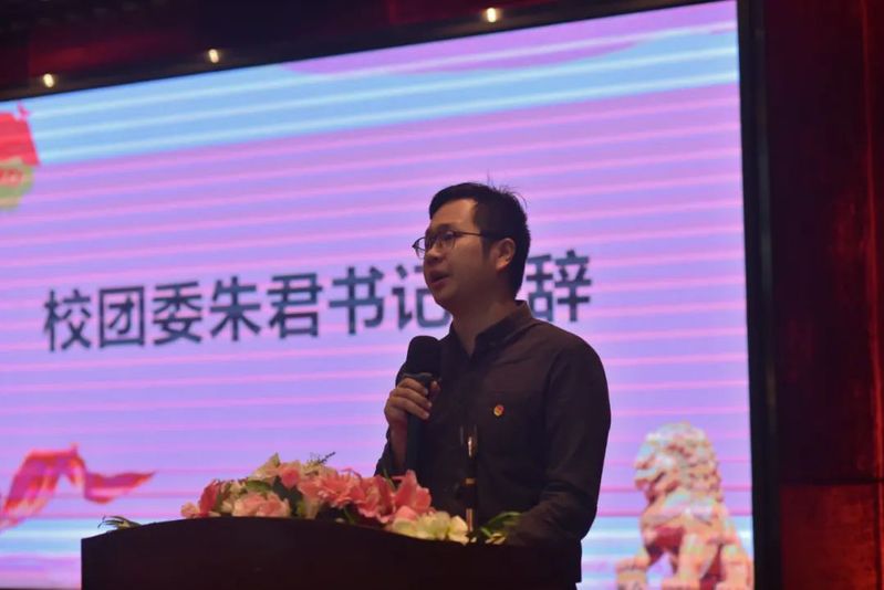 校團(tuán)委朱君書記上臺發(fā)表致辭,他首先向我校新加入校團(tuán)委的干事們表示歡迎并給予期望,希望學(xué)生干部們以非常責(zé)任心的態(tài)度對待各項(xiàng)工作。