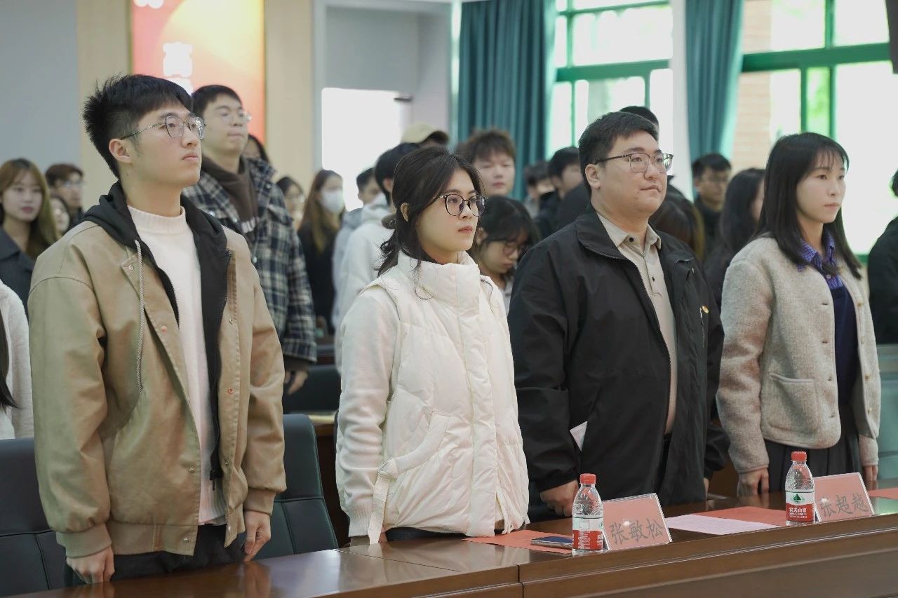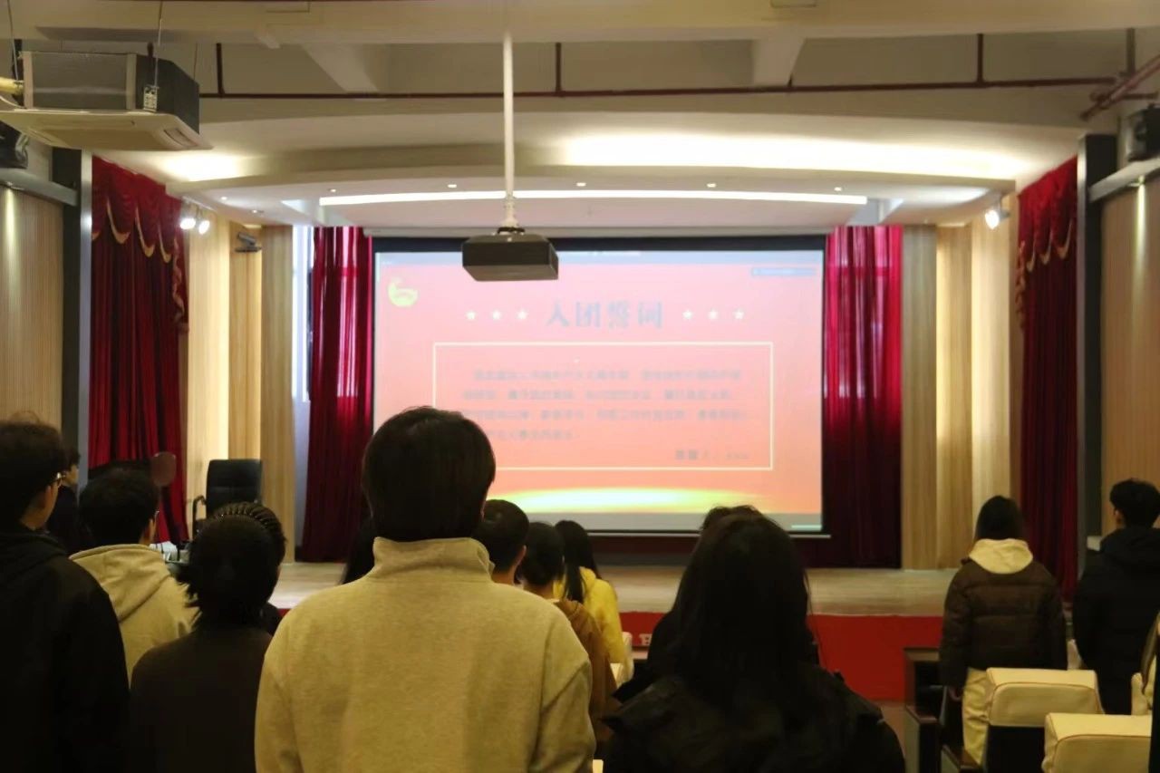 隨后,校團委辦公室張敏松帶領(lǐng)全體新團員面對團旗,舉起右拳,莊嚴宣誓。誓言鏗鏘有力,回蕩在會場的每一個角落,表達了新團員們對共青團組織的鄭重承諾和肩負時代使命的決心。