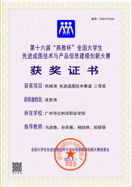 吳世濤同學(xué)為2024屆畢業(yè)數(shù)控技術(shù)專業(yè)畢業(yè)生,目前留校擔(dān)任科研助理一職,在校期間考取了三級制圖員。