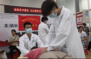 2.杏林惠民?中醫(yī)藥文化進萬家活動。依托中醫(yī)藥協(xié)會和體育與健康管理協(xié)會,組織師生進社區(qū)、養(yǎng)老院、鄉(xiāng)鎮(zhèn)村開展義診,提供體質(zhì)辨識、推拿按摩理療服務;同步開展中醫(yī)藥科普講座、養(yǎng)生知識宣傳,踐行公益,弘揚中醫(yī)藥文化。
