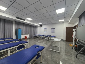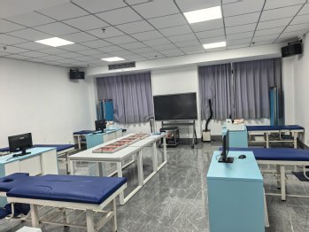 4 | 針灸推拿實訓室 | 用于針灸學、推拿學、中醫(yī)適宜技術等課程的教學與實訓 | 按摩床、治療車、針刺模擬人、推拿模擬人、十四經(jīng)穴模型、紅外理療燈、立式煙霧凈化器等 | 150 |