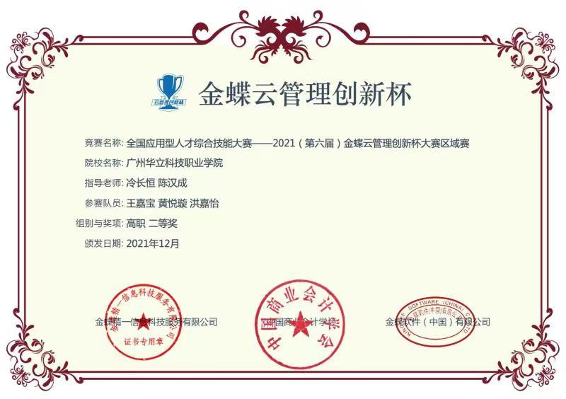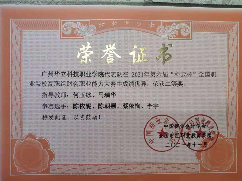 學(xué)生參加“科云杯”全國(guó)職業(yè)院校財(cái)會(huì)職業(yè)能力大賽全國(guó)二等獎(jiǎng)