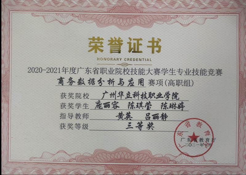 2020-2021年度廣東省職業(yè)技能大賽商務(wù)數(shù)據(jù)分析與應(yīng)用賽項(xiàng)三等獎(jiǎng)