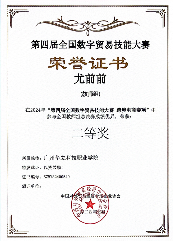 2024年“第四屆全國(guó)數(shù)字貿(mào)易技能大賽-跨境電商賽項(xiàng)”全國(guó)教師組總決賽二等獎(jiǎng)