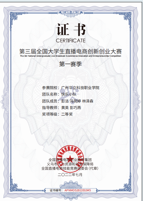 全國(guó)大學(xué)生直播電商創(chuàng)新創(chuàng)業(yè)大賽二等獎(jiǎng)