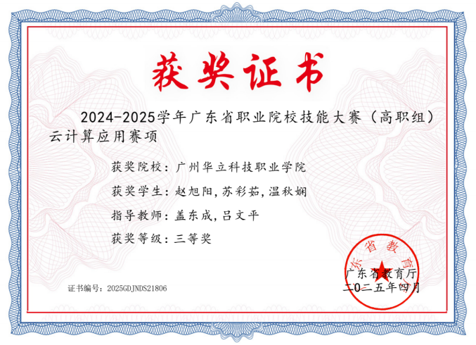 (圖14 云計(jì)算應(yīng)用(省賽)三等獎(jiǎng)) |