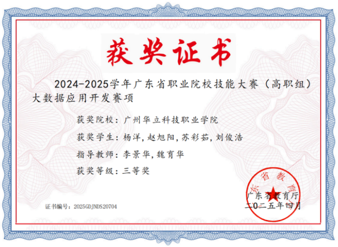 (圖12 大數(shù)據(jù)應(yīng)用開發(fā)(省賽)三等獎(jiǎng)) |