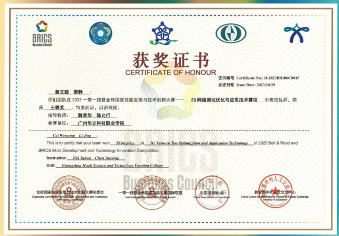 (圖17 5G網(wǎng)絡(luò)測試優(yōu)化與應(yīng)用技術(shù)全國三等獎(jiǎng)) |