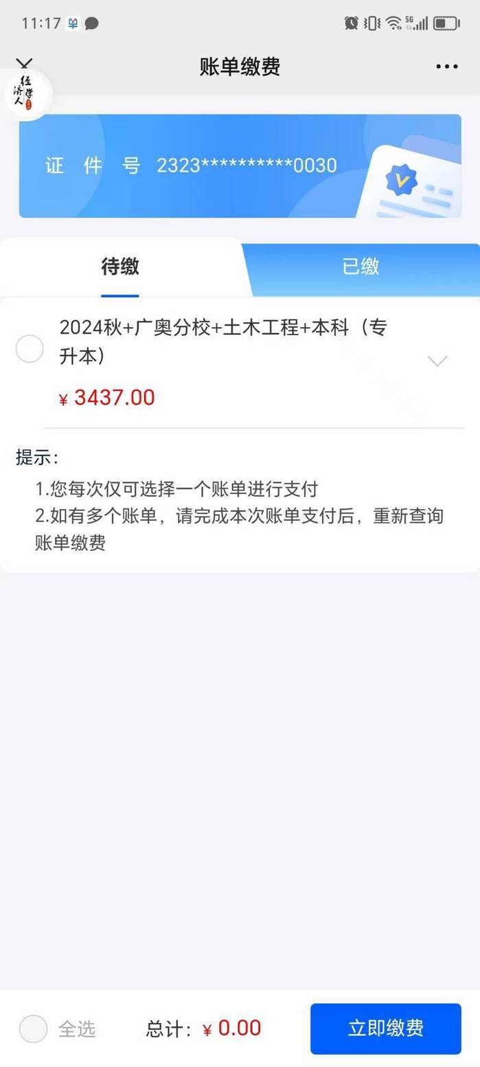 進(jìn)行交費(fèi),交費(fèi)時(shí)請核對金額。
