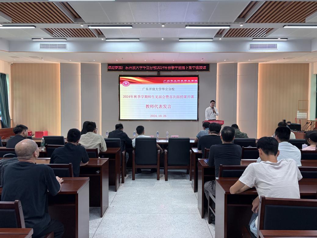 10月26日上午,廣東開放大學(xué)華立分校2024年秋季學(xué)期師生見面會(huì)暨首次面授課開課在廣州華立科技職業(yè)學(xué)院圖書館104講學(xué)廳舉行。華立分校教學(xué)點(diǎn)負(fù)責(zé)人、廣州華立科技職業(yè)學(xué)院繼續(xù)教育學(xué)院領(lǐng)導(dǎo)、輔導(dǎo)教師、導(dǎo)修老師、學(xué)生代表出席了本次見面會(huì)。本次見面會(huì)由繼續(xù)教育學(xué)院鄭潔萍老師主持。