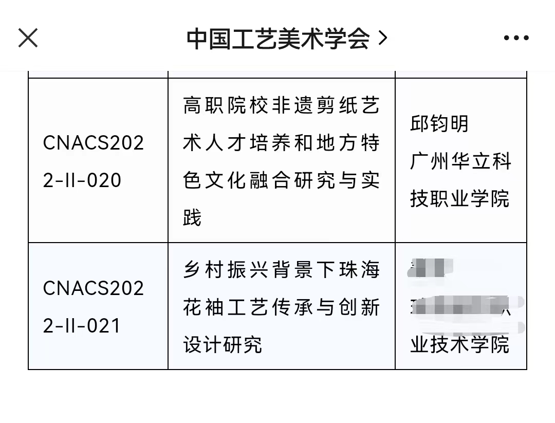 近日,從中國工藝美術學會傳來喜訊,廣州華立科技職業(yè)學院教育學院邱鈞明老師申報的課題《高職院校非遺剪紙藝術人才培養(yǎng)和地方特色文化融合研究與實踐》獲得中國工藝美術學會2022年度工藝美術科研課題研究項目立項!