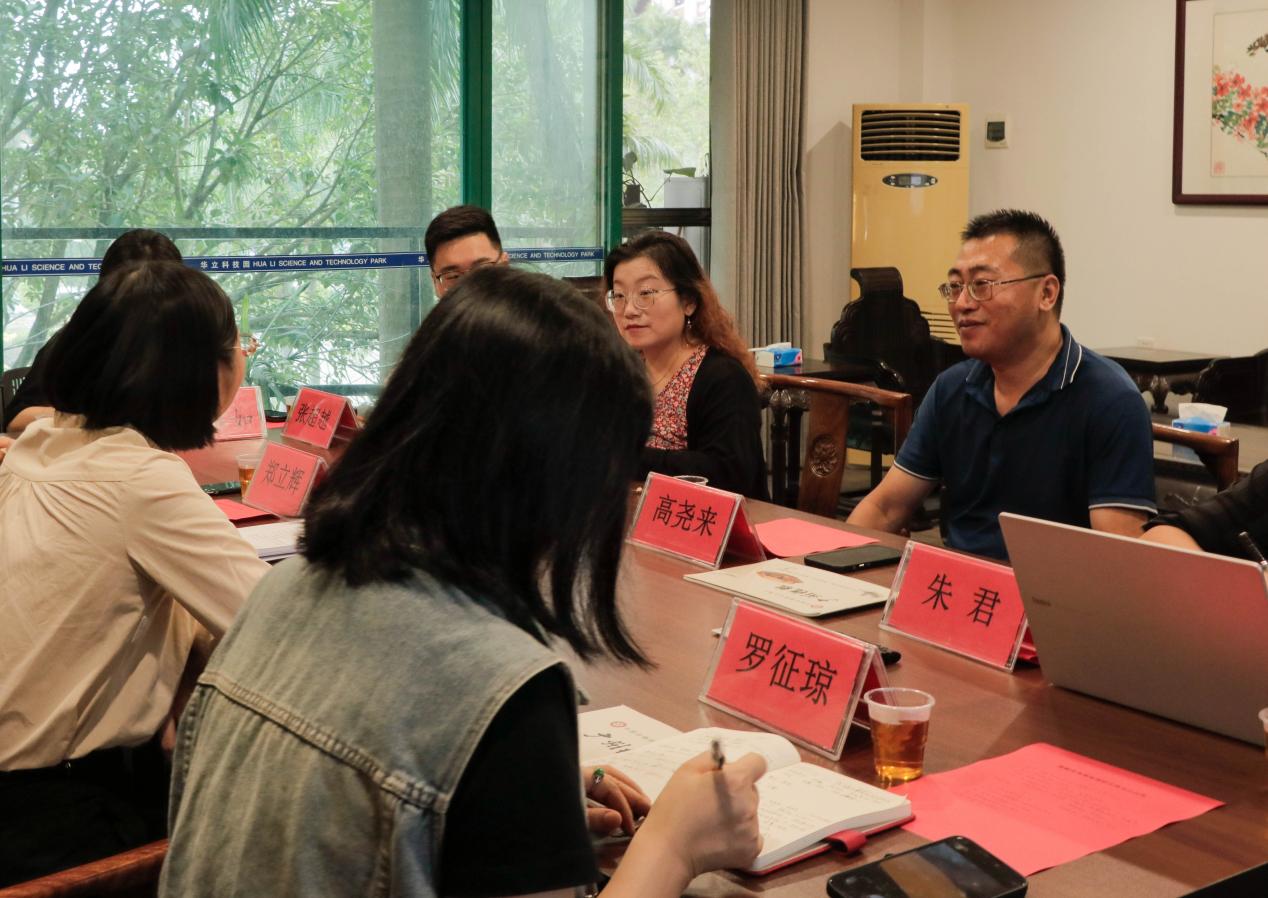 座談會上,教育學(xué)院朱君副院長匯報(bào)了教育學(xué)院普通話測試站的基本情況及廣州欖雕傳承的建設(shè)情況,增城團(tuán)區(qū)委姚銀敬副書記闡述了大學(xué)生實(shí)習(xí)實(shí)踐基地以及“宮校合作”建設(shè)的愿景。