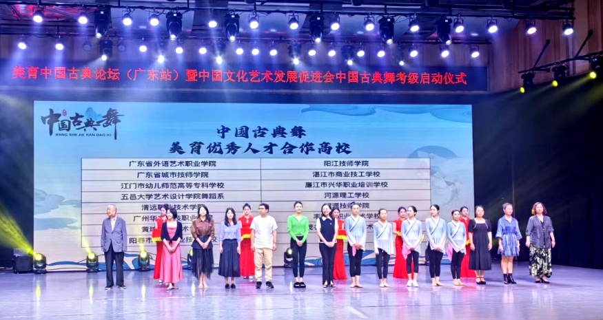 4月27日,“美育中國古典舞論壇(廣東站)暨中國文化藝術(shù)發(fā)展促進(jìn)會中國古典舞考級啟動(dòng)儀式”在廣東省外語藝術(shù)職業(yè)學(xué)院舉行。國家總督學(xué)顧問、國家教育咨詢委員、教育部原副部長張?zhí)毂3鱿⒅罗o。我校校長助理張劍鋒,教育學(xué)院院長馬岳良及學(xué)院舞蹈教師賴梅、謝金曦應(yīng)邀參加活動(dòng)。