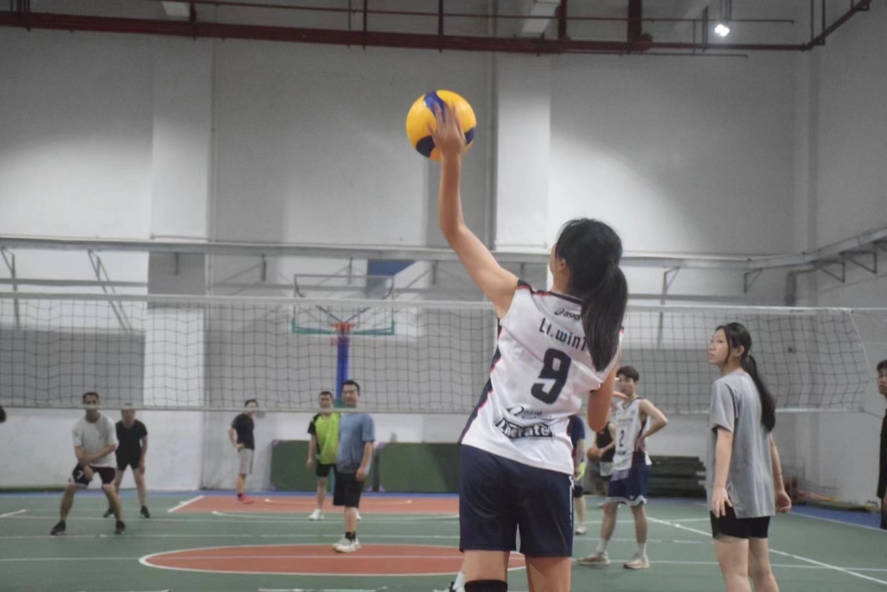 本著“友誼第一,比賽第二”的原則,此次比賽分為熱身賽,競(jìng)技賽以及娛樂賽,旨在提高大家的身體素質(zhì)和勇于拼搏的精神。隨著主裁判的哨聲,場(chǎng)上隊(duì)員在球網(wǎng)兩側(cè)攻守往來(lái),頑強(qiáng)搏殺,緊咬的分?jǐn)?shù)讓比賽的高潮迭起;場(chǎng)上場(chǎng)下隊(duì)員們團(tuán)結(jié)一心,讓每一個(gè)球都凝聚著智慧與團(tuán)結(jié),整個(gè)賽場(chǎng)上充滿吶喊,激情澎湃。