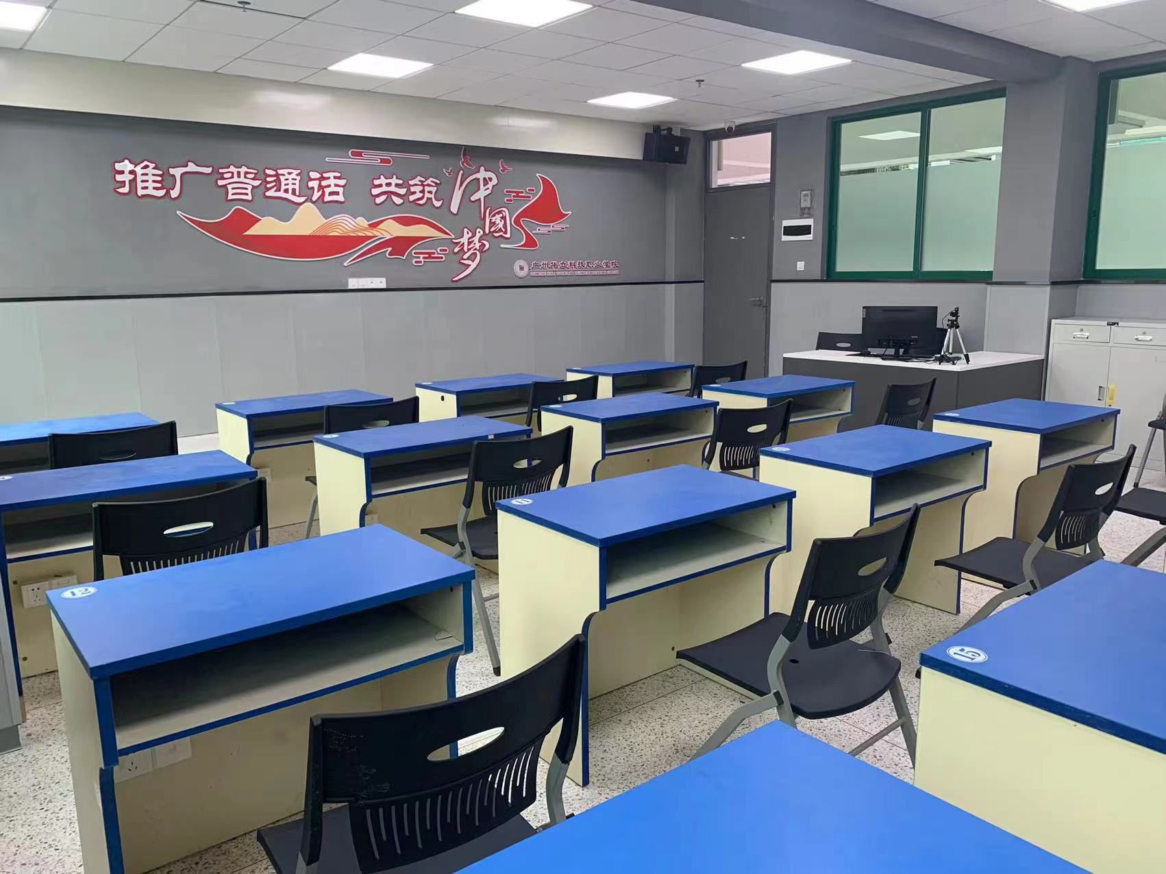 普通話測(cè)試站配套設(shè)施齊全,配備了設(shè)備先進(jìn)、標(biāo)準(zhǔn)化的候測(cè)室、信息采集室和測(cè)試室,總面積為600平方(云浮校區(qū)360平方,廣州校區(qū)240平方);測(cè)試室語(yǔ)音倉(cāng)24間(云浮校區(qū)10間,廣州校區(qū)14間),硬件設(shè)備達(dá)到省內(nèi)先進(jìn)水平。