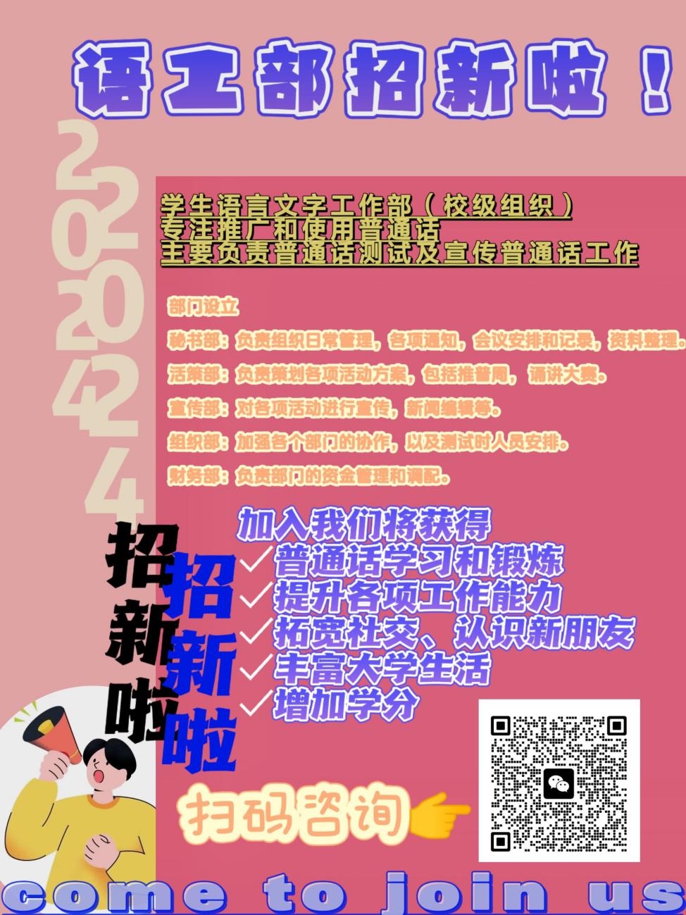 目前語(yǔ)工部正在招新,加入語(yǔ)工部你可以收獲: