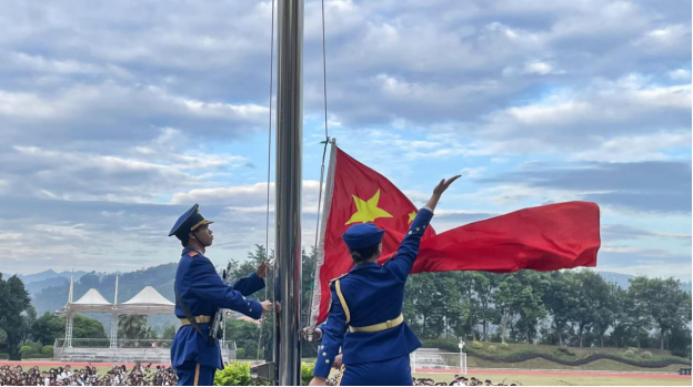 7時40分,升旗儀式正式開始。在雄壯嘹亮的國歌聲中,五星紅旗冉冉升起,獵獵飄揚的旗幟與師生們堅毅的目光交相輝映,將愛國情懷與安全使命深度融合。