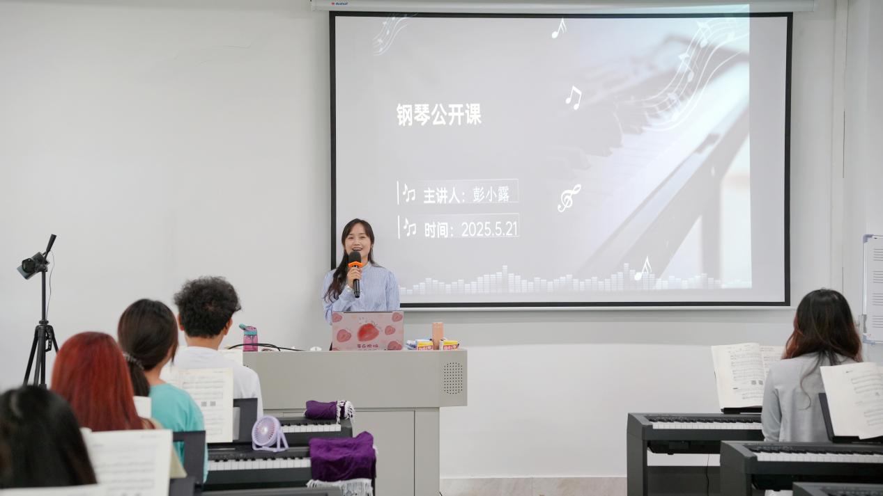 5月21日下午,彭小露老師的《鋼琴基礎(chǔ)》公開課在科技樓902教室開講。彭老師憑借豐富的教學經(jīng)驗,以生動有趣的方式講解鋼琴基礎(chǔ)知識,從識譜到指法訓練,循序漸進、耐心細致。課堂中,她巧妙運用多媒體教學手段,將抽象的音樂理論形象化、具體化,不僅能讓學生們輕松掌握鋼琴演奏的基本技能,更能培養(yǎng)學生們的音樂審美能力和藝術(shù)表現(xiàn)力,為學生們今后從事學前教育工作打下堅實基礎(chǔ)。