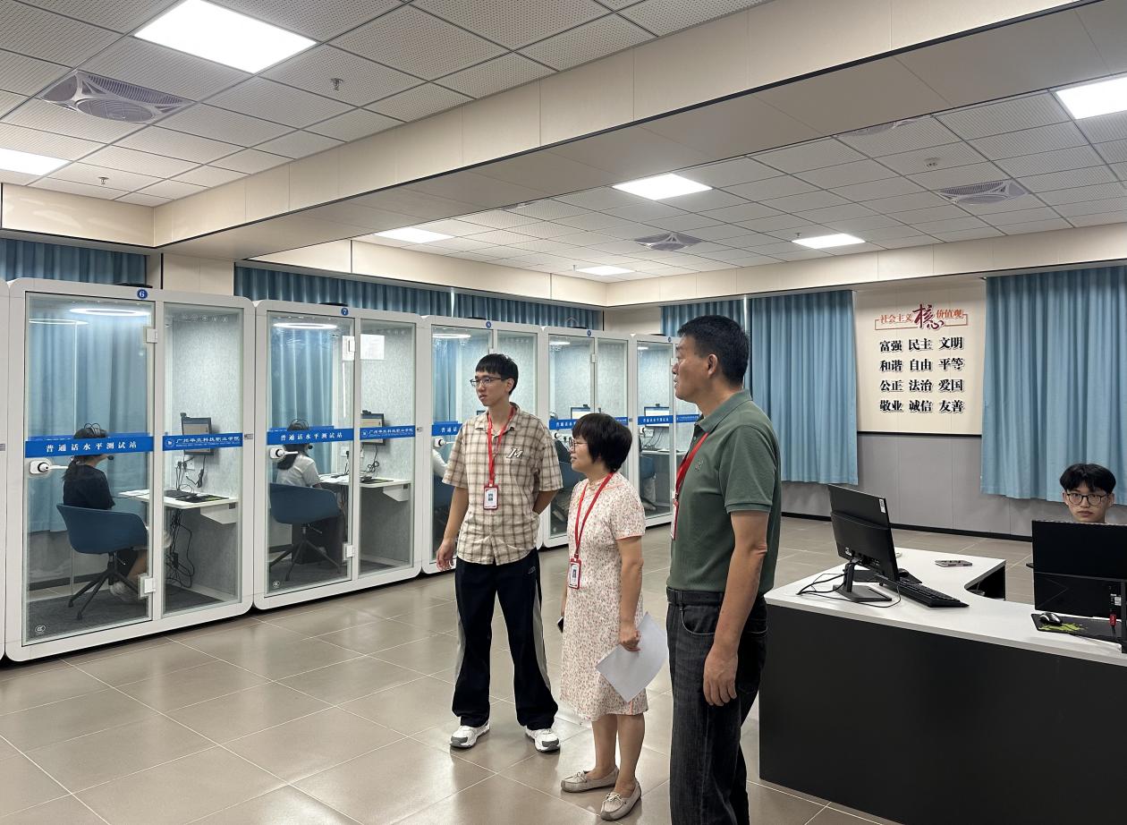 普通話水平測(cè)試是推廣普及國(guó)家通用語(yǔ)言文字、提升師生語(yǔ)言文字應(yīng)用能力的重要舉措。廣州華立科技職業(yè)學(xué)院高度重視此項(xiàng)工作,學(xué)校領(lǐng)導(dǎo)班子對(duì)測(cè)試的組織籌備、考務(wù)安排等環(huán)節(jié)給予了充分關(guān)注與支持。測(cè)試期間,副校長(zhǎng)王洪艷、教育學(xué)院院長(zhǎng)馬岳良親臨測(cè)試現(xiàn)場(chǎng)指導(dǎo),詳細(xì)了解考務(wù)流程、考生狀態(tài)及考場(chǎng)保障等情況,并對(duì)工作人員的辛勤付出表示感謝,勉勵(lì)大家嚴(yán)格按照測(cè)試規(guī)范操作,確保測(cè)試工作公平、公正、有序進(jìn)行。