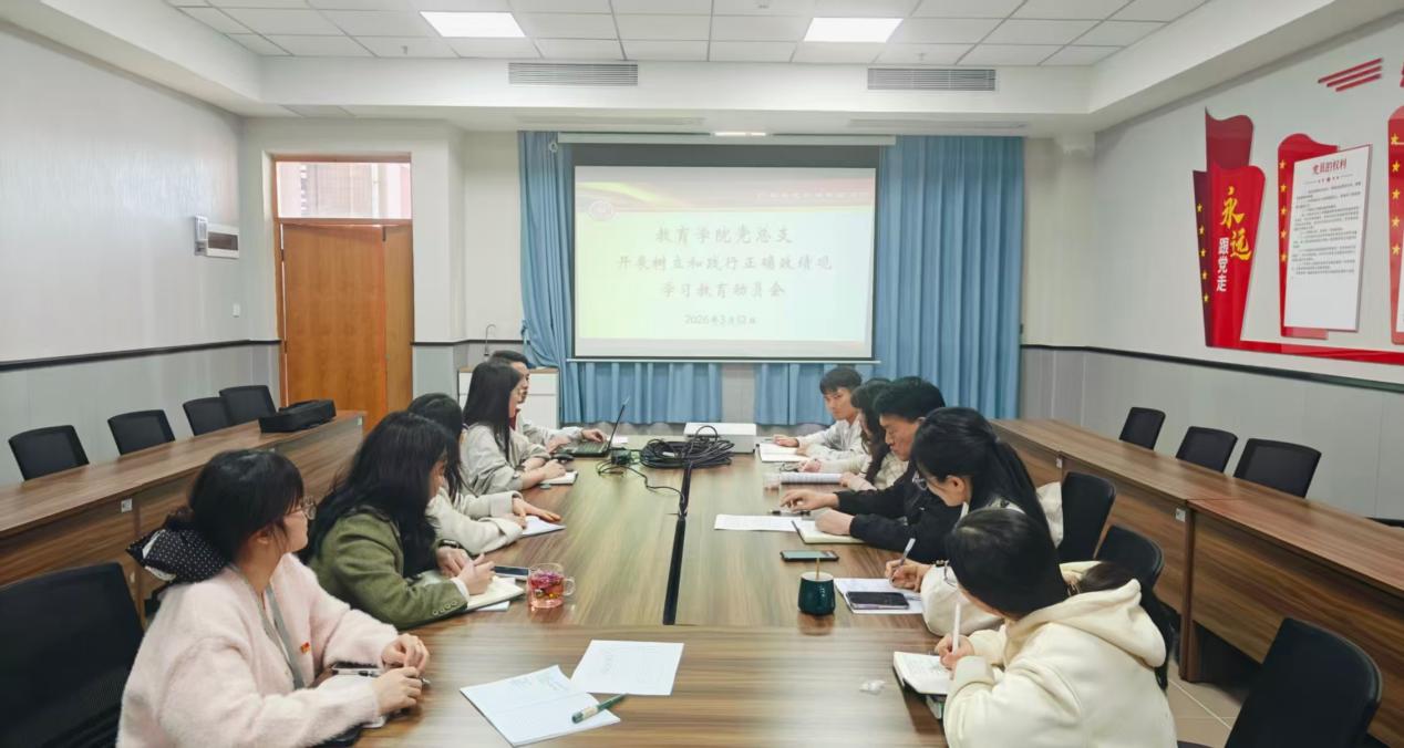會(huì)上,馬岳良傳達(dá)學(xué)習(xí)了學(xué)院黨總支關(guān)于開展正確政績觀學(xué)習(xí)教育的通知精神與實(shí)施方案。會(huì)議明確,本次學(xué)習(xí)教育以"立黨為公、為民造福、科學(xué)決策、真抓實(shí)干"為總要求,自 2026 年 3 月啟動(dòng)至 7 月底結(jié)束,將一體推進(jìn)學(xué)習(xí)研討、問題查擺、整改整治、建章立制、開門教育五個(gè)環(huán)節(jié),確保學(xué)習(xí)教育不走形式、取得實(shí)效。