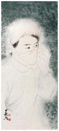 殷華鋒 《白衣天使》中國畫 2020年