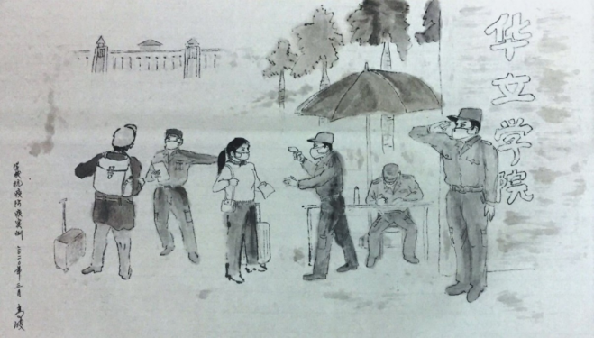 人物動(dòng)態(tài)、神情與場(chǎng)面來自華立職院抗疫生活,反映了主題繪畫與學(xué)校防控的直接關(guān)系。此畫為廣州華立科技職業(yè)學(xué)院劉莊校長的朋友高波先生創(chuàng)繪,并由劉校長推薦與大家見面。
