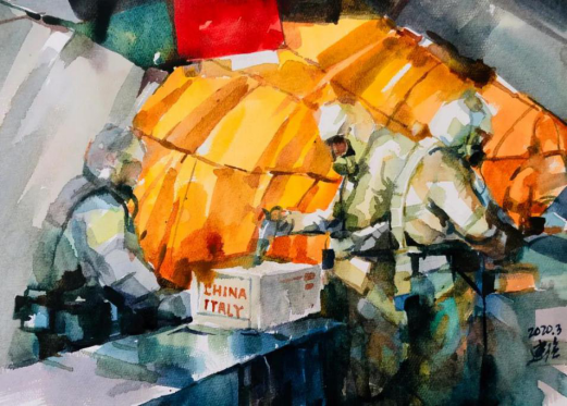 當(dāng)下疫情在世界各地爆發(fā)。畫面呈現(xiàn)了我國援助意大利醫(yī)療用品的情景,體現(xiàn)了人類命運(yùn)共同體的理念,展示了中國當(dāng)擔(dān)精神。