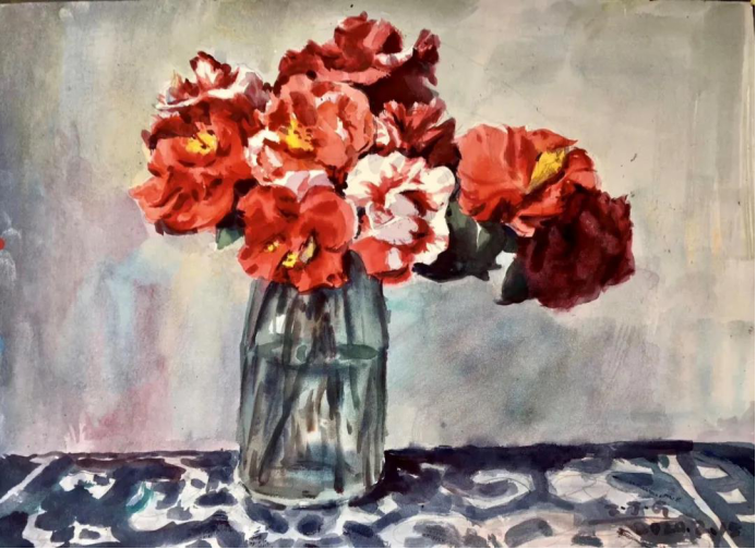 干凈利落的筆觸,大塊面的顏色,表現(xiàn)充滿生命力的鮮花,以此向疫情爆發(fā)迎險(xiǎn)而上的白衣天使致敬!