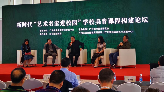 李于昆(中坐者)在廣州國(guó)際藝術(shù)博覽會(huì)主辦的美育論壇上發(fā)言(201912月)