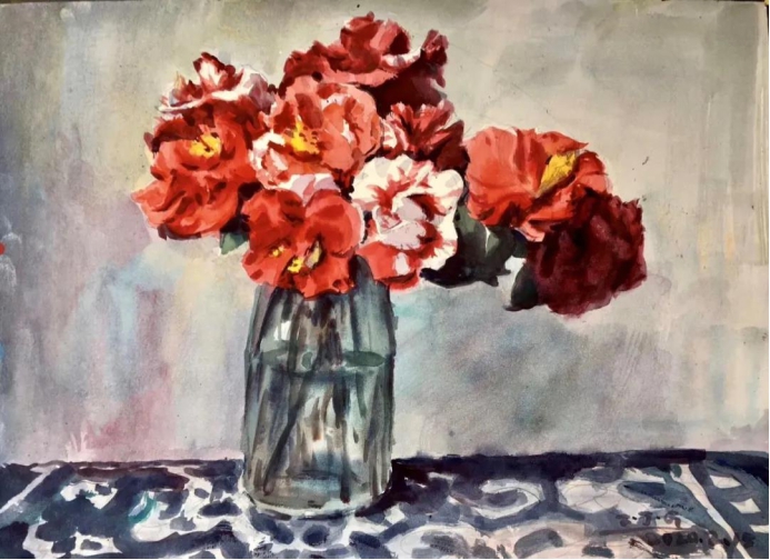 干凈利落的筆觸,大塊面的顏色,表現(xiàn)充滿生命力的鮮花,以此向疫情爆發(fā)迎險而上的白衣天使致敬!