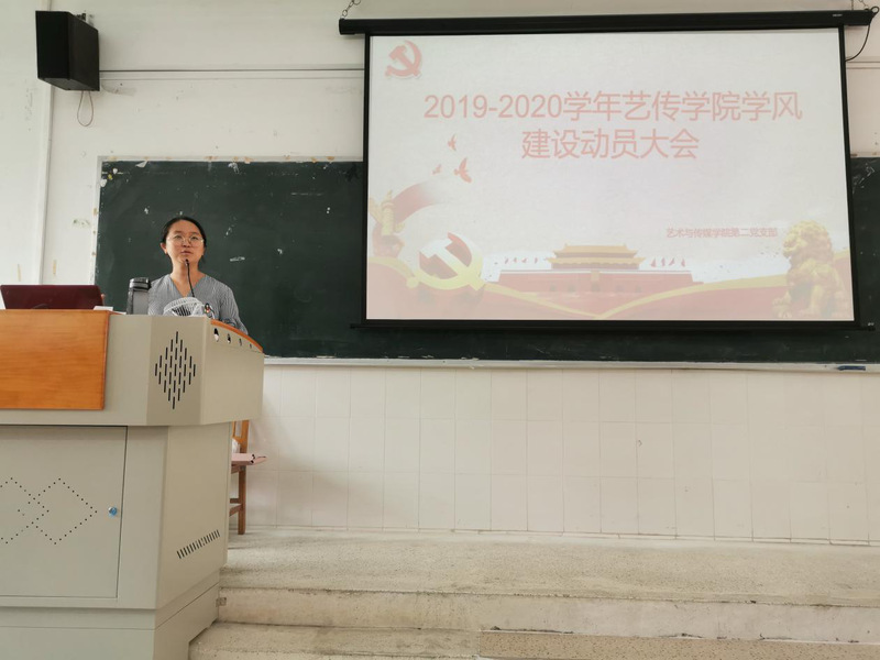 2019年10月9日中午,趁剛過完國慶假期,藝術(shù)與傳媒學(xué)院召開2019—2020年第一學(xué)期思政第一課暨學(xué)院學(xué)風建設(shè)大會,本次大會出席的領(lǐng)導(dǎo)為:藝術(shù)與傳媒學(xué)院第二黨支部書記——胡彩霞老師。出席此次會議的成員有:藝傳黨建小組,18屆班干代表,19屆班干代表,18屆輔導(dǎo)員助理。