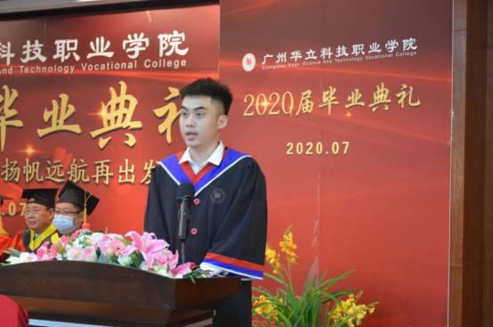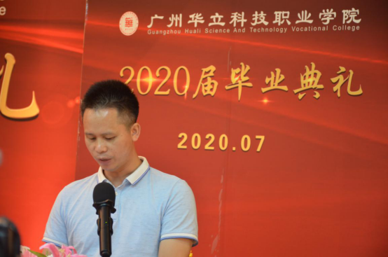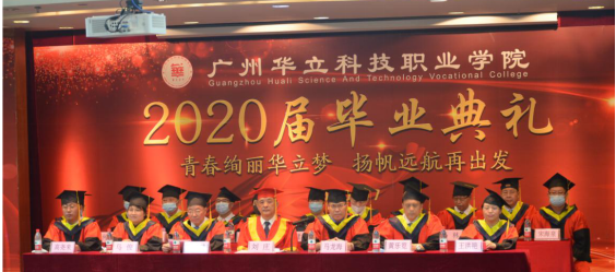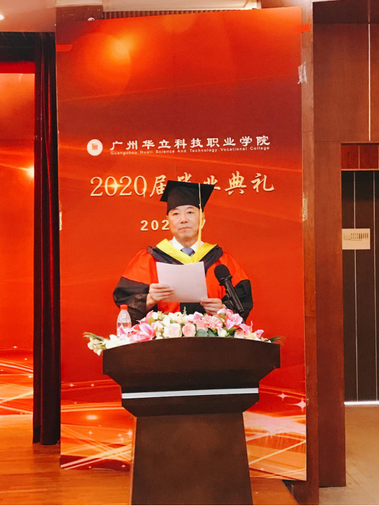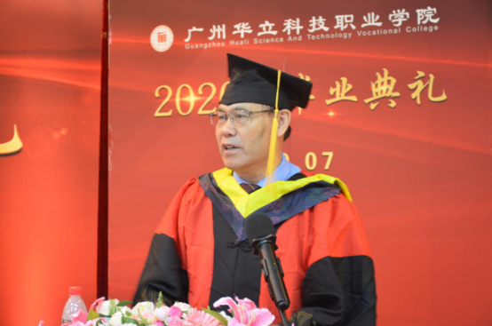 典禮在莊嚴(yán)的國歌聲中開始,校長劉莊致辭,他代表學(xué)校向圓滿完成學(xué)業(yè)的2020屆畢業(yè)生致以熱烈的祝賀,向辛勤培育學(xué)生的全體教職工表示衷心感謝。他深情寄語畢業(yè)生,“面對疫情這場大考,大家知難而上,以頑強拼搏的精神,交出了一份份精彩的畢業(yè)答卷,展現(xiàn)了新時代華立人的風(fēng)采。”劉莊校長為2020屆全體畢業(yè)生點贊,并與全體畢業(yè)生一起回顧過去三年來學(xué)校與同學(xué)們的點滴。今年,我校共有畢業(yè)生4393名,其中,1690名同學(xué)獲得各類獎學(xué)金,230名同學(xué)獲得市級以上榮譽稱號,176名同學(xué)被評為優(yōu)秀畢業(yè)生,238名同學(xué)光榮加入了中國共產(chǎn)黨。學(xué)校見證了同學(xué)們的成長,同學(xué)們也見證了華立的發(fā)展。學(xué)校大力推進創(chuàng)新強校工程,辦學(xué)規(guī)模不斷擴大,辦學(xué)水平顯著提高,招生質(zhì)量逐年提升,就業(yè)率穩(wěn)居全省同類院校前列,各項事業(yè)蒸蒸日上。乘著國家職業(yè)教育改革發(fā)展和粵港澳大灣區(qū)戰(zhàn)略發(fā)展的東風(fēng),相信學(xué)校的明天一定會更好!