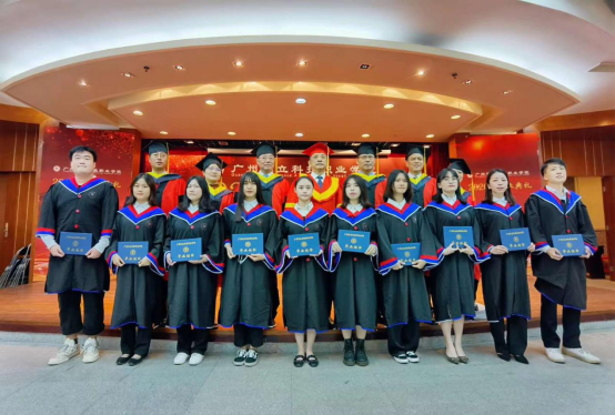 伴著歡快的樂曲,領(lǐng)導(dǎo)為參加畢業(yè)典禮的畢業(yè)生頒發(fā)畢業(yè)證書并合影留念。