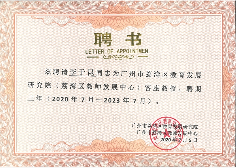 近日,我院院長李于昆教授被廣州市荔灣區(qū)教育發(fā)展研究院聘為客座教授。我院在堅持發(fā)展高職辦學(xué)特色中,始終堅持服務(wù)社會的理念,鼓勵教師走出去,積極主動通過科研項目、專業(yè)實踐和校企共建實踐基地等,提升教師能力和學(xué)院的社會美譽(yù)度。