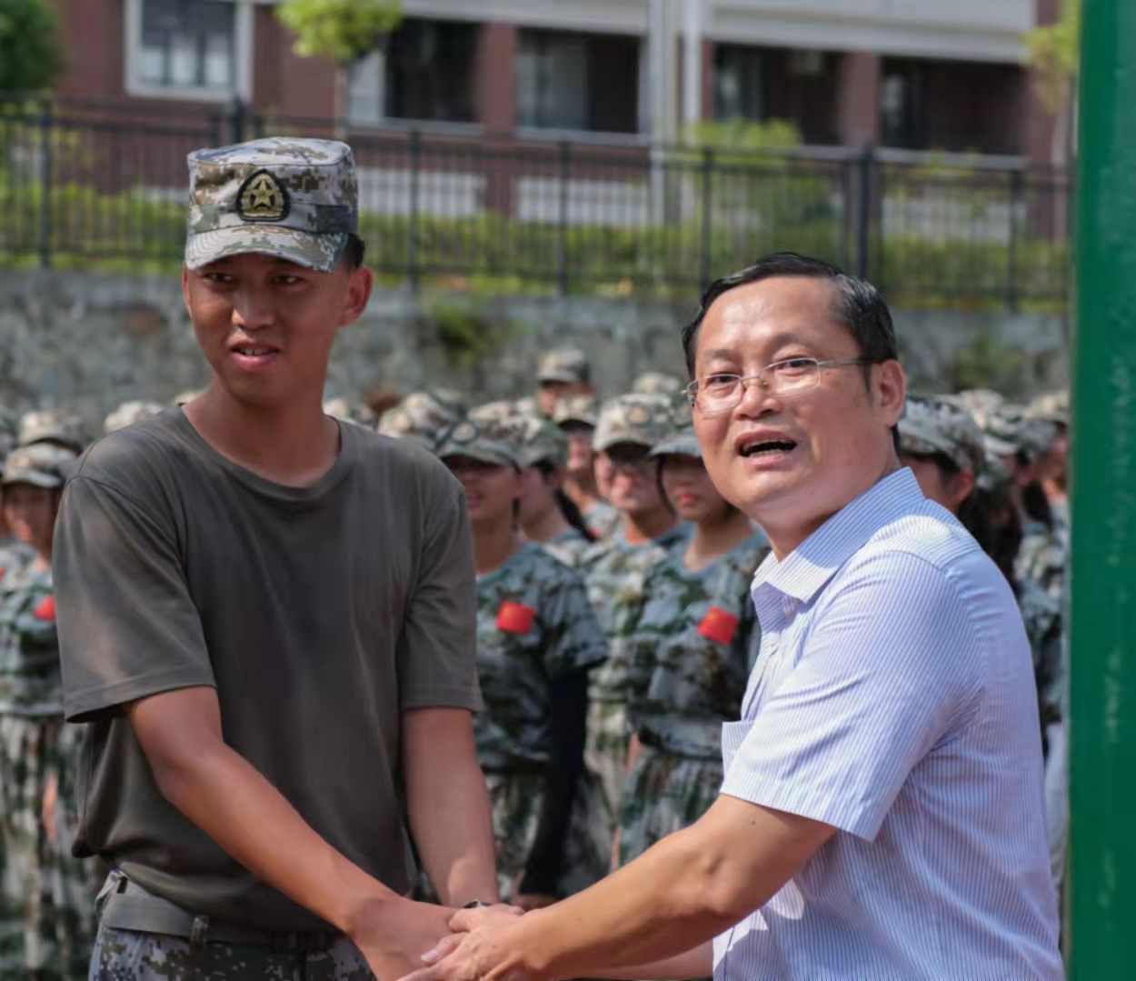 (孟允煌副院長對擔(dān)任軍訓(xùn)任務(wù)的教官握手致意)
