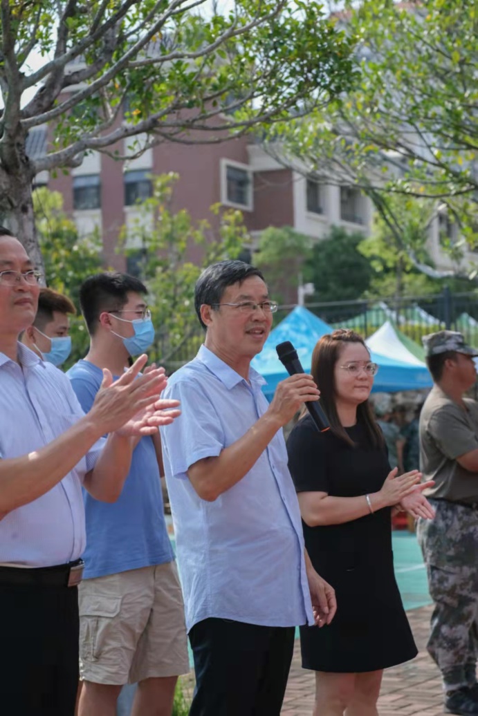 李于昆院長代表藝術(shù)與傳媒學(xué)院全體教師,首先表達了對參訓(xùn)學(xué)生的關(guān)心,鼓勵同學(xué)們發(fā)揚嚴(yán)于律己、吃苦耐勞精神,展現(xiàn)出積極向上的精神風(fēng)貌,以高標(biāo)準(zhǔn)完成軍訓(xùn)任務(wù)。同時,他提醒同學(xué)們注意身體,在炎日的酷暑下要多喝水,共同做好疫情防控工作。中秋佳節(jié)臨近,李院長提前向軍訓(xùn)教官和同學(xué)們致以節(jié)日的問候!