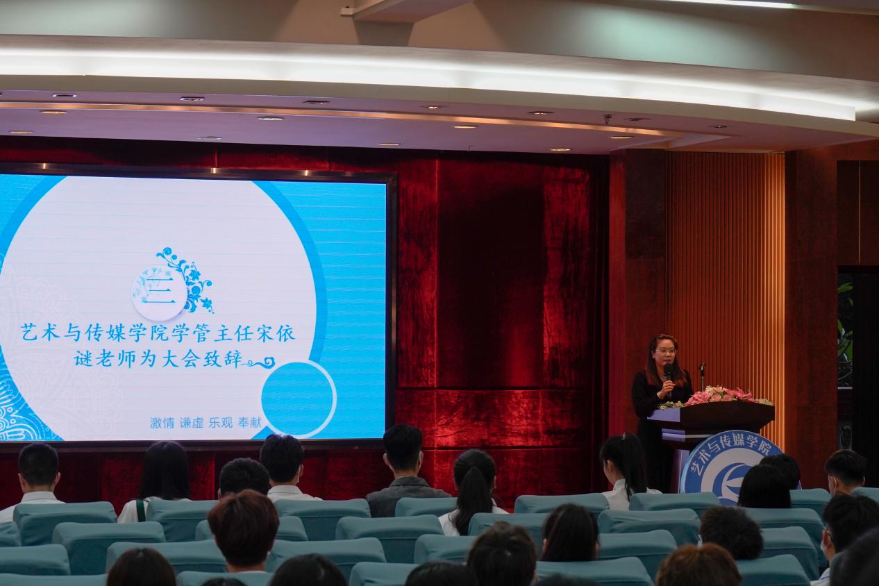 最后他表示希望同學(xué)們秉承信念,秉承自身要為藝傳的明天添磚加瓦的決心,用滿懷滿腔的熱情,為藝術(shù)與傳媒學(xué)院做出自己的貢獻(xiàn)。
