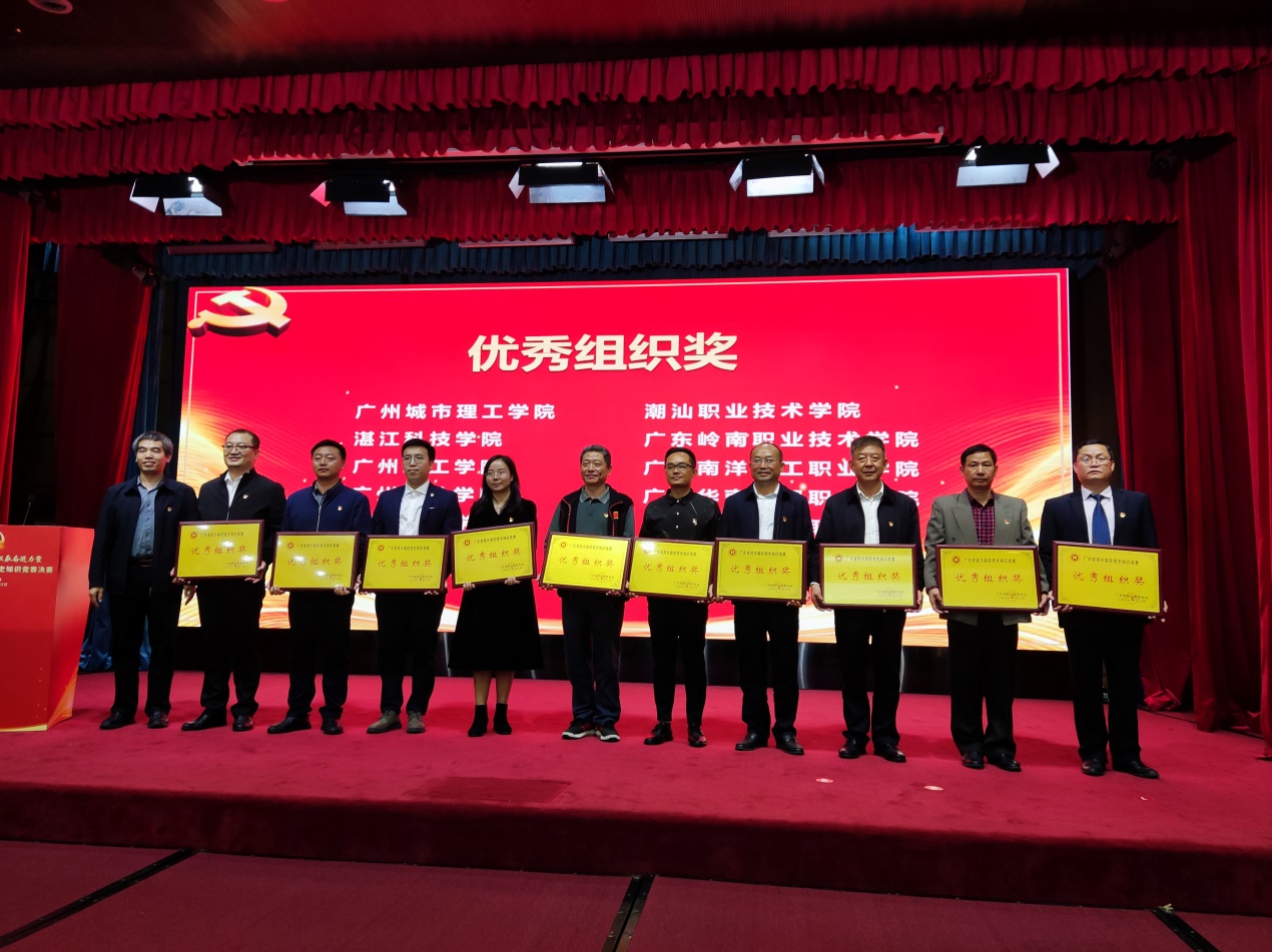 2021年12月12日,為期一個(gè)多月的廣東省民辦高校黨史知識(shí)競(jìng)賽在廣州舉行決賽。我校代表隊(duì)在激烈的角逐中表現(xiàn)出色,喜獲??平M三等獎(jiǎng),同時(shí)還獲該項(xiàng)賽事的優(yōu)秀組織獎(jiǎng)。我校藝術(shù)與傳媒學(xué)院黨總支書記孟允煌代表學(xué)校黨委領(lǐng)取了優(yōu)秀組織獎(jiǎng)牌匾。