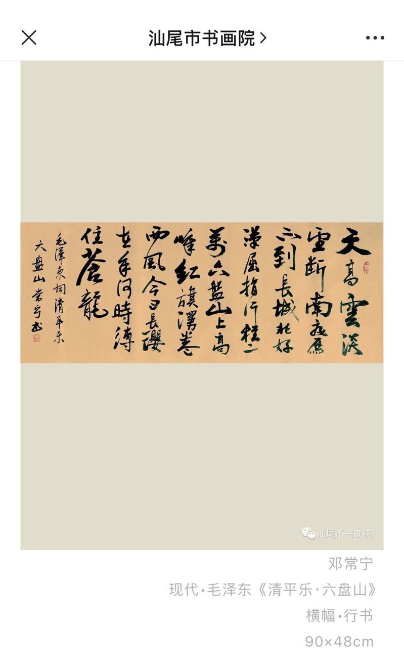 2022年4月3日在汕尾文聯(lián)指導(dǎo)下,汕尾市書(shū)畫(huà)院特策劃舉辦[我們的節(jié)日]同心抗疫文明追思—汕尾市書(shū)畫(huà)作品網(wǎng)絡(luò)展。我院鄧常寧老師的兩幅書(shū)畫(huà)作品成功入選汕尾市書(shū)畫(huà)作品網(wǎng)絡(luò)展。